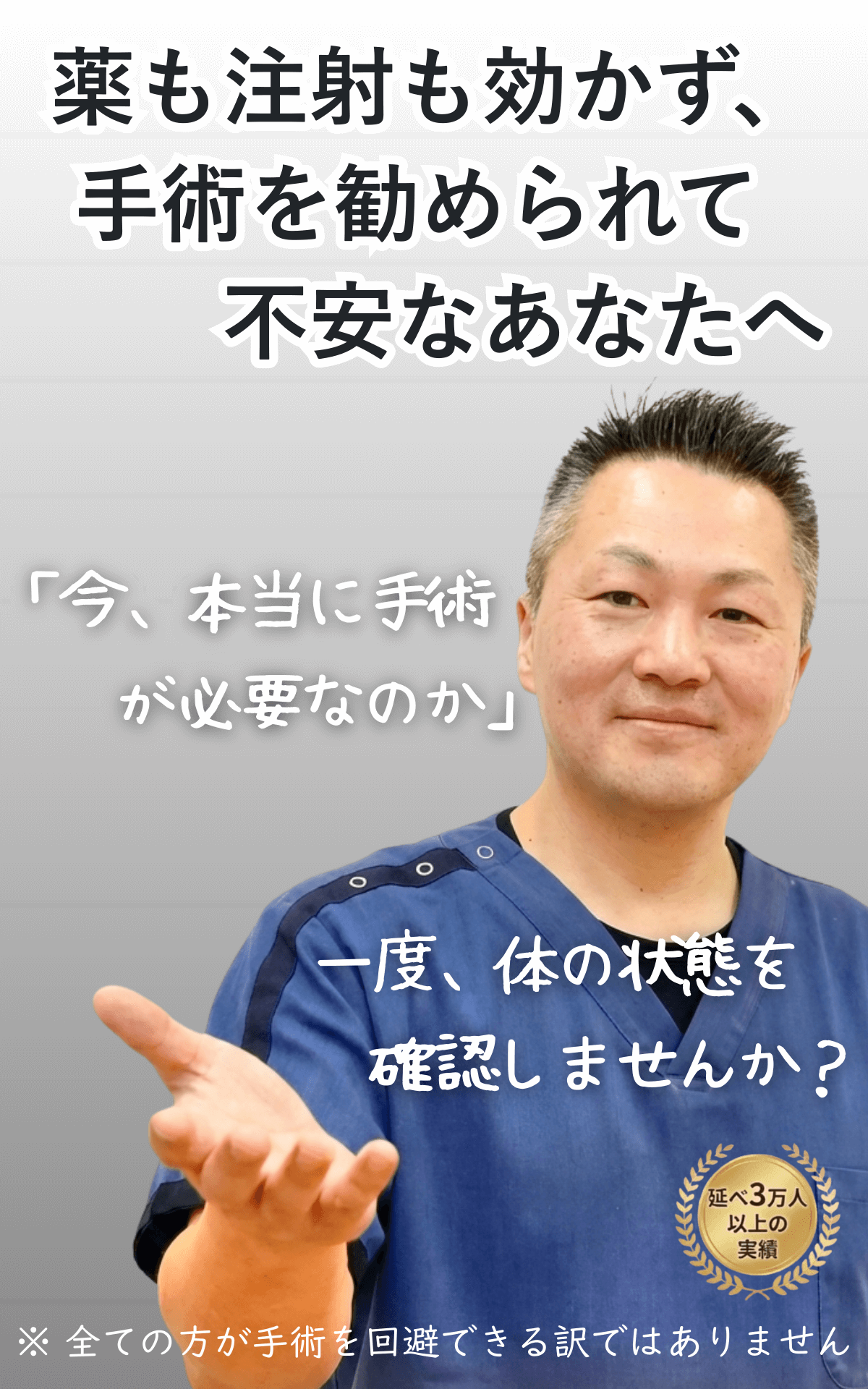 ※ 臨床33年・延べ3万人以上の施術経験をもとに、院長が最後まで対応します。